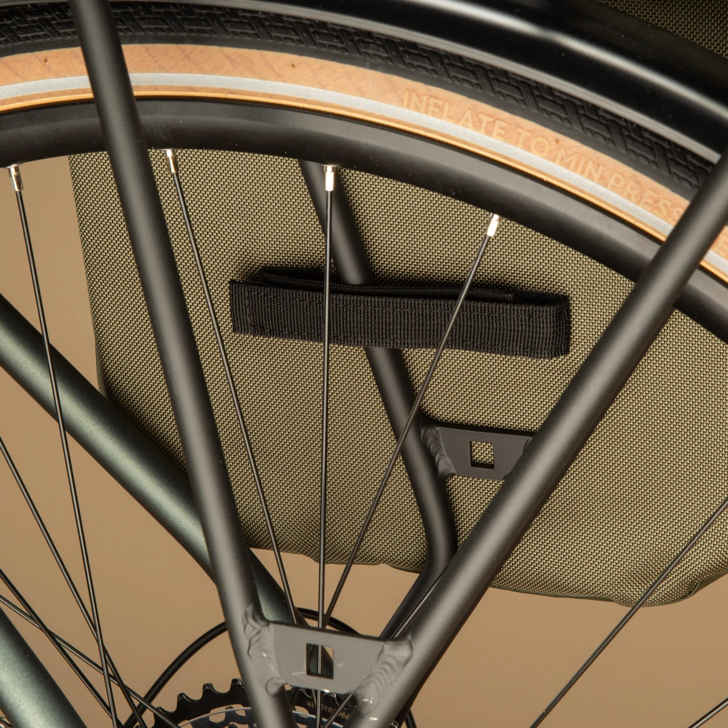 Can be mounted on the pannier rack of a folding bike so long as it is placed as far back as possible, so as not to interfere with pedalling.