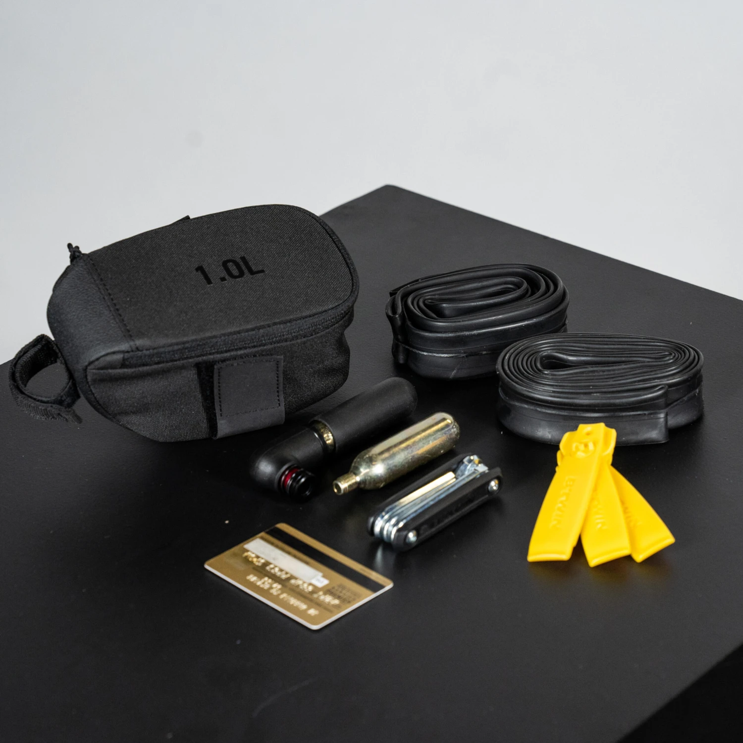 – Three 700×25-32 inner tubes + 2 tyre levers + 1 multi tool + two 20 g C02 cartridges + inflation valve