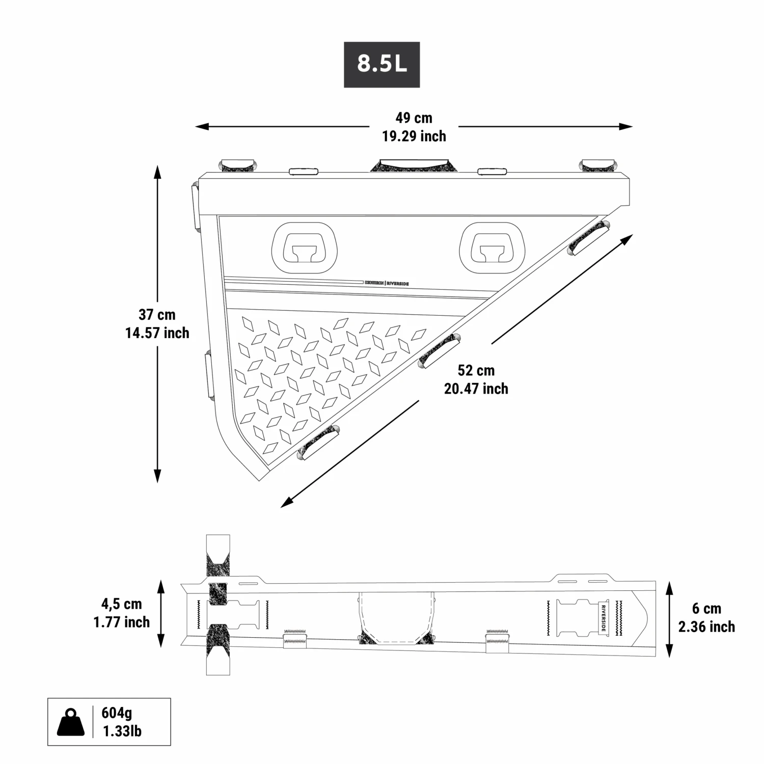 Our team of bikepackers has designed this IPX6 waterproof frame bag for storing heavy items and/or for quickly accessing your things when bikepackingIt is extremely durable and watertight (IPX6) thanks to its roll-top design.